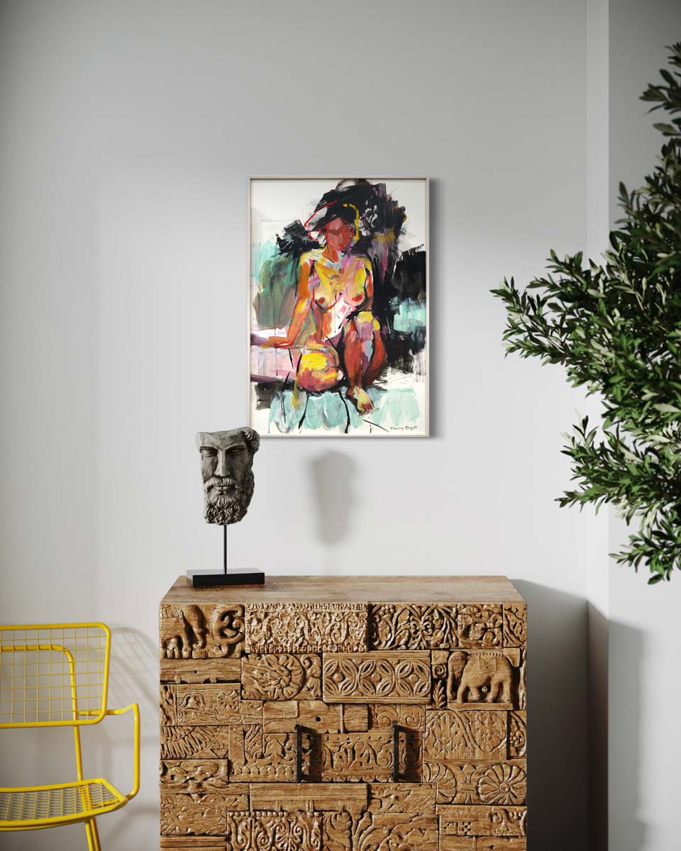 Southern Belle ist mehr als ein Aktbild – es ist ein Porträt von Selbstbehauptung und Innerlichkeit, eingefangen in einem Moment zwischen Pose und Emotion. Ergott gelingt es, die Körperlichkeit in ein emotionales Ausdrucksfeld zu überführen und dabei die Kraft der Farbe in den Mittelpunkt zu stellen.