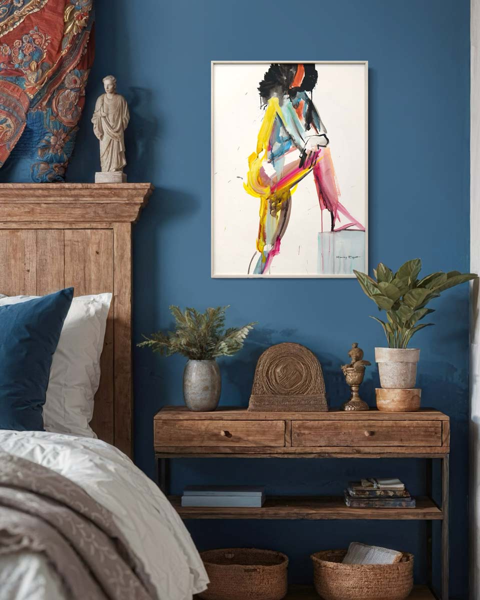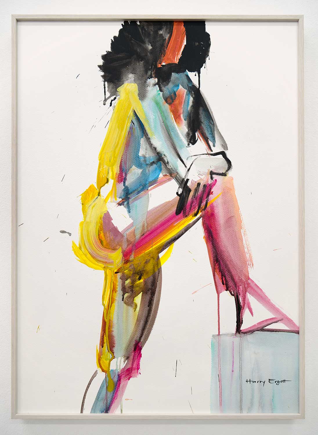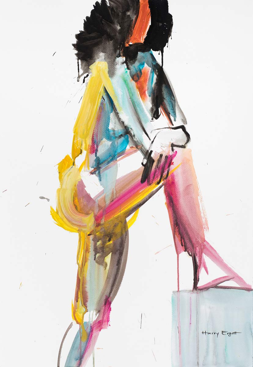 Mit Wild Rose präsentiert Harry Ergott eine expressive, fast tänzerische Annäherung an die menschliche Figur. Die abstrakte Silhouette einer Frau entsteht in einem spontanen Wechselspiel aus farbiger Energie und reduzierter Linie – eine Studie in Bewegung und Gefühl.