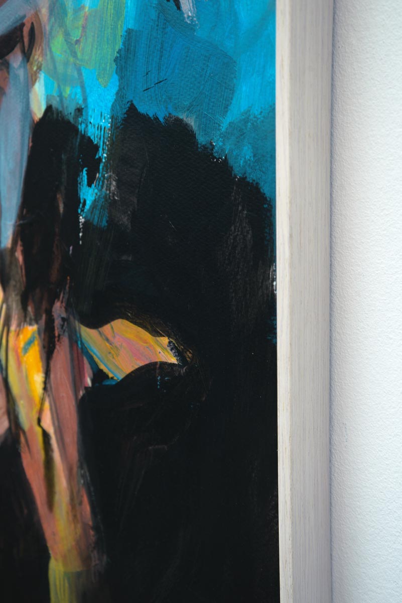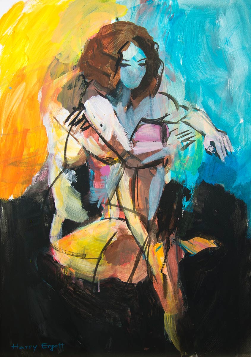 Mit expressivem Duktus und pulsierender Farbenergie entwirft Harry Ergott in "You Move Me" eine Momentaufnahme emotionaler Nähe und innerer Bewegung. Die Figur ist reduziert auf das Wesentliche – fragmentiert, doch voller Ausdruck – eingebettet in eine Atmosphäre vibrierender Farbkontraste. Die markanten schwarzen Linien strukturieren die Komposition wie eine spontane Choreografie, die vom Klang innerer Musik getragen wird.