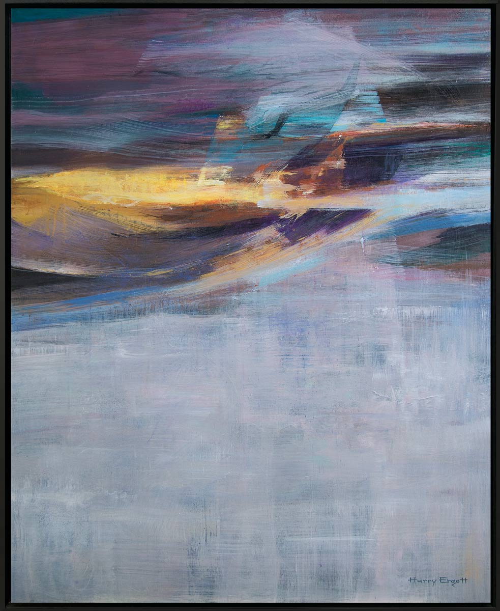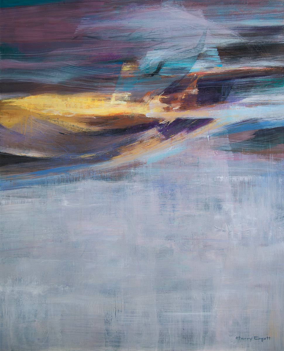 Mit Elements taucht Harry Ergott tief in die Sprache der Abstraktion ein und erschafft ein Werk, das durch seine atmosphärische Dichte und kraftvolle Farbdynamik besticht. Horizontale Bewegung und weich verlaufende Farbschichten erzeugen ein spannungsvolles Zusammenspiel zwischen Licht und Raum, Chaos und Ordnung.