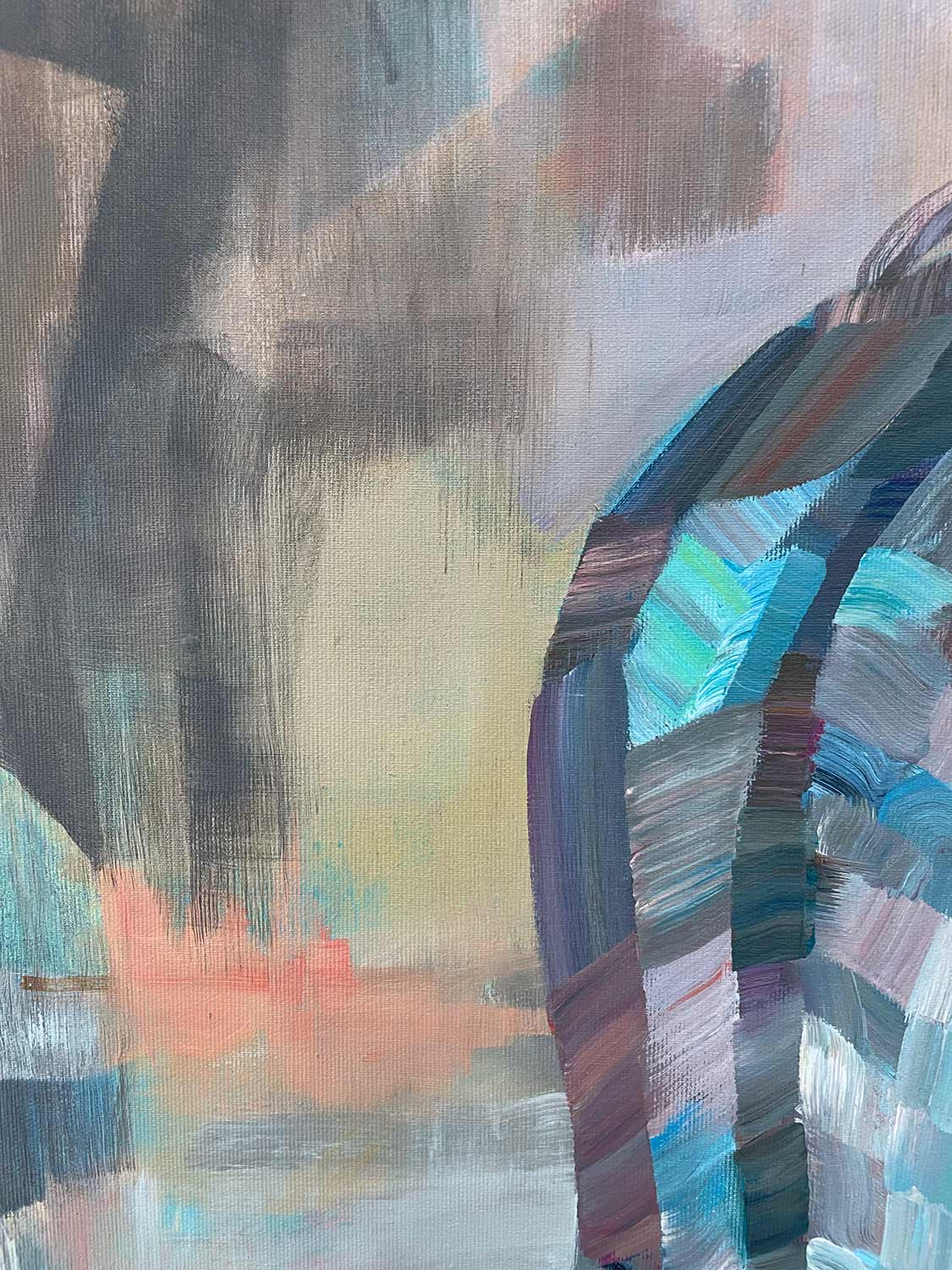 “Ethereal” ist ein sinnliches Spiel aus Licht, Fragmentierung und Farbe – ein eindrucksvolles Beispiel für Ergott’s Fähigkeit, das Figürliche mit dem Expressiven zu verbinden.