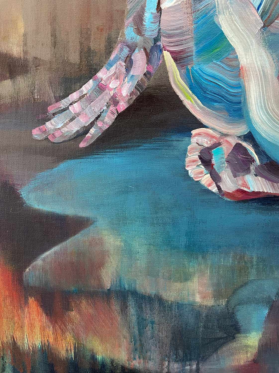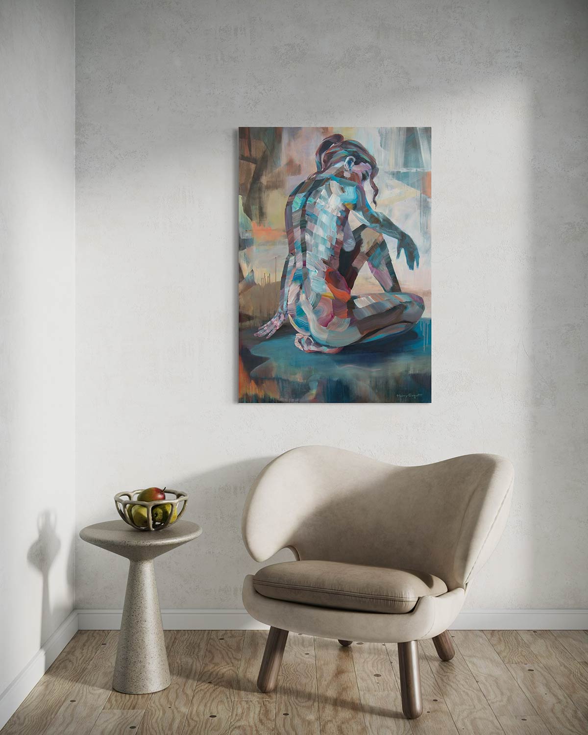 Der menschliche Körper wird hier nicht als bloßes Abbild verstanden, sondern als emotionale Landschaft. Zwischen Figuration und Auflösung oszillierend, wirkt das Werk wie ein visuelles Echo innerer Zustände – zerbrechlich und kraftvoll zugleich.